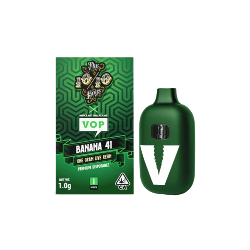Experience BANANA 41, a premium live resin cannabis extract created for connoisseurs seeking quality and flavor, with its smooth, creamy, and indica-heavy vibes. The 10/10 Boys and VOP worked together exclusively to create this 1.0-gram disposable vape, which offers a rich, full-bodied experience.
